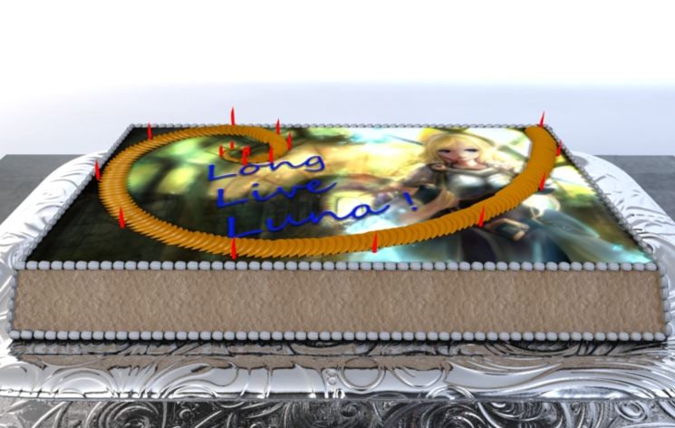 I call it. "Golden Space De'Lux". It is by definition a space cake. It's existance would leave a mark on one's memory, but like your dreams and wishes, this cake is at least possible to make, and images of it is all I can do for ya, but it's better than nothing while I feel you deserve more. Make wishes all year round and do what you must to fulfill them, they rarely ever happen on their own, so keep at, it and work hard. And Long live Luna !